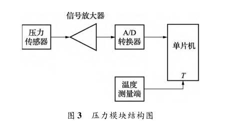 壓力模塊部分除了重要的壓力傳感器之外還包 A/D轉換,單片機,電源管理電路,恒流源,溫度補 償電路幾個電信號處理部分,原理結構如圖3所示。