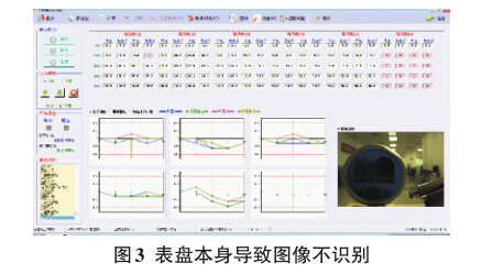 診斷分析及處理過程2:如圖3所示,在某一塊 被檢表大面積出現(xiàn)了圖像不識(shí)別的現(xiàn)象,對(duì)此可以 判斷為被檢表因素,導(dǎo)致不識(shí)別現(xiàn)象。處理方式: ①查看被檢表是否未上正;②查看被檢表的表盤是 否反光或者刻度線的粗細(xì)是否均勻。
