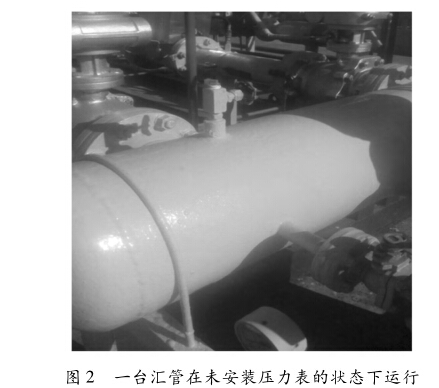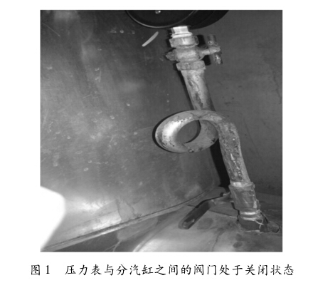 在壓力容器的檢驗(yàn)過程中,除壓力表未及時(shí)送檢之外, 還存在其他一些問題。例如壓力表與容器之間的閥門關(guān)閉 (圖1),未安裝壓力表(圖2),量程選擇偏大或者偏小,鉛封 損壞未修復(fù)等。