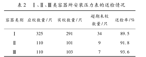 TSG R0004 - 2009 根據(jù)壓力容器的介質(zhì)、設(shè)計(jì)壓力和 容積等將壓力容器劃分為I、II、III類。表2是將三年內(nèi)的 壓力容器定期檢驗(yàn)報(bào)告按容器類別進(jìn)行分類。I、II、III類 壓力容器所用壓力表的送檢率逐漸提高,m類壓力容器所用 壓力表的送檢率要顯著高于i類壓力容器。這反映出企業(yè) 對于不同類別壓力容器的安全附件重視程度有所差異。