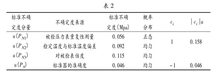 輸入量Pn的標準不確定度主要由(1)被檢壓力表 重復性測量引入的標準不確定度;(2)檢定溫度與標準 溫度偏差引入的標準不確定度;(3)對被檢表估度引入 的標準不確定度。