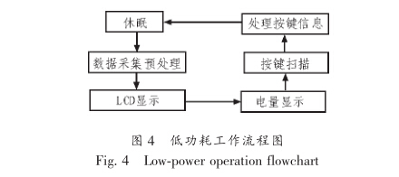 為了達(dá)到低功耗的標(biāo)準(zhǔn),就必須要實(shí)現(xiàn)休眠模式與正常 模式切換的功能,所以壓力表在長(zhǎng)期沒(méi)有操作的狀態(tài)下會(huì)進(jìn) 入如圖4所示的一種低功耗模式。單片機(jī)進(jìn)入到休眠模式后 會(huì)在規(guī)定時(shí)間內(nèi)被喚醒,而在休眠模式下其功耗會(huì)大大降 低,單片機(jī)被喚醒后會(huì)進(jìn)工作狀態(tài),工作完后會(huì)再次進(jìn)入休 眠模式。這樣不僅不會(huì)影響單片機(jī)工作,還能延長(zhǎng)電池的使 用壽命。