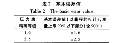 壓力表量程為0 ~ 1. 0 MPa,精確度為2. 5級,基本誤差值在為15 V ~客25冗時,為0.05 MPa,其他溫度下誤差值的判斷見表3規定.