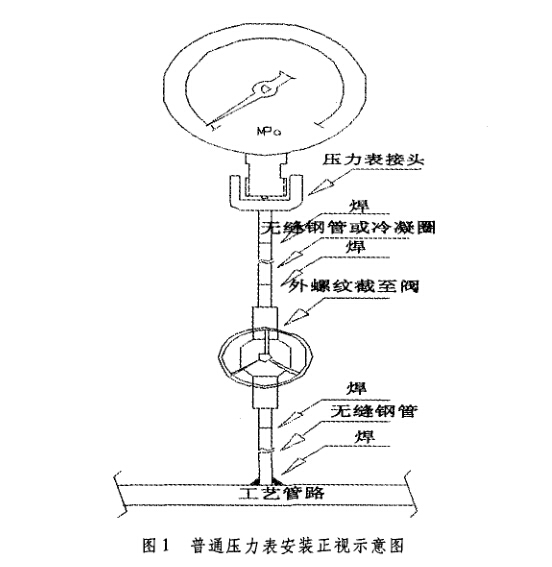 普通壓力表安裝結(jié)構(gòu)示意圖見(jiàn)圖1。