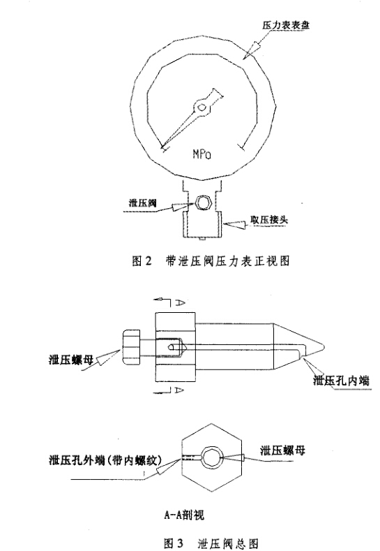 帶泄壓閥的壓力表結(jié)構(gòu)圖見(jiàn)圖2,圖3。