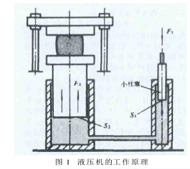 在機(jī)械制造中使用最多的機(jī)械是液壓 機(jī),液壓機(jī)有不同的類型、不同的用途,在 機(jī)械制造中可以用來(lái)進(jìn)行鍛壓、沖壓、冷 擠、壓裝等等,不同的液壓機(jī)在機(jī)械制造中 有不用的作用。在制造業(yè)也將液壓機(jī)成為 油壓機(jī),在機(jī)械制造中通過(guò)利用靜液壓對(duì) 金屬、木材、塑料等進(jìn)行加工。液壓機(jī)使用 的液體同,有的是水,有的是油,其中水壓 機(jī)產(chǎn)生的壓強(qiáng)非常大,所以經(jīng)常在機(jī)械制 造中用來(lái)進(jìn)行沖壓和鍛壓制造。(圖1) 所有的液壓機(jī)工作原理都是相同的, 都是在帕斯卡定律的基礎(chǔ)上完成制造的。 如上圖有兩個(gè)面積大小不同塞柱,分別是 S1和S2,在這兩個(gè)塞柱上的作用力大小分 分別為F1和F2,在壓強(qiáng)原理的基礎(chǔ)上,通過(guò)