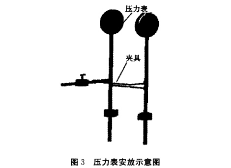 為了保證校準精度,將2個表放在同一高度,并 用夾具固定,然后用測壓軟管把它們連接到測量回 路中。
