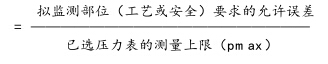 規定壓力表的測量上限只能比 監測處承載壓力大,不能小,是為 了防止壓力表超載,保證其安全可 靠地工作。規定擬選壓力表的測量 上限只能比監測處承載壓力值大 1/3,是因為壓力表測量上限如選 擇過大,工作時指針角位移則較 小,壓力變化不易觀察。