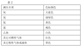 1、按其所測介質(zhì)不同,在壓力表上規(guī)定有不同的色標(biāo), 并注明特殊介質(zhì)的名稱,如表2所示。測量氧氣的壓力表還 在標(biāo)度盤上標(biāo)以紅色“禁油”字樣,此表必須嚴(yán)格禁油。鍋 爐上用的壓力表,色標(biāo)顏色為黑色。