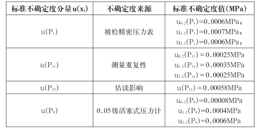 對本傳遞標準,其估讀數為0.001 MPa,半寬區為0.001 MPa,儀表讀數為均勻分布,置信因子k=辦。