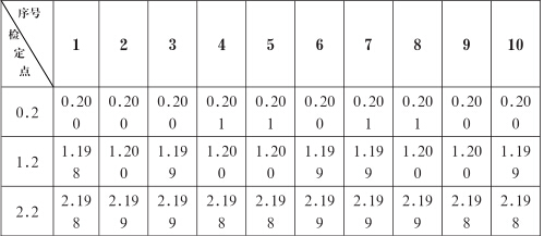 依據LG 49-2013《彈性元件式精密壓力表和真空表》檢定 規程的要求,用鄂爾多斯市產品質量計量檢測所的量程為 (0.1~6)MPa的0.05級活塞式壓力計,對型號:YB-150A,出廠 編號:671,測量范圍:(0~2.5) MPa,準確度等級:0.25級,分度 值:0.01 MPa的精密壓力表進行示值誤差檢定,檢定點分別為 0.2 MPa, 1.2 MPa和2.2 MPa三個點,檢定時的環境溫度為 21.0T;,濕度為 51.0%RH。