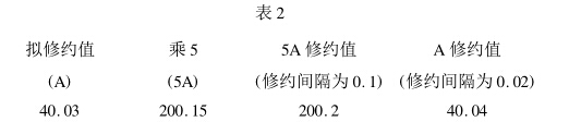 (40. 02 + 40. 04 + 40. 02 + 40. 04)/4 = 40. 03 ;直接修 約,其結(jié)果為40. 03。由于該表分度值為0. 2 ,讀數(shù)時(shí)按 照1/ 10估讀,因此修約間隔為0. 02 ,而上述修約結(jié)果并 非0.02的整數(shù)倍,因此結(jié)果錯(cuò)誤。正確的修約過(guò)程如表 2所示。