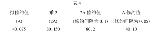 計(jì)算平均值:(40. 02 + 40. 02 + 40. 02 + 40. 04)/4 = 40. 025 ; (40. 02 + 40. 04 + 40. 04 + 40. 04) / 4 = 40. 035 ; (40. 04 + 40. 04 + 40. 06 + 40. 06)/4 = 40.05 其修約過(guò)程如表3所示。