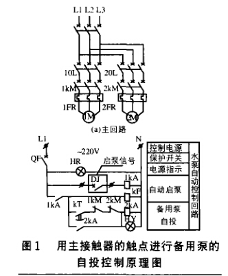 1.用主接觸器的觸點進行備用 泵的自投控制