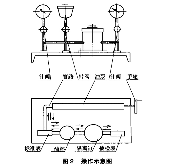 文章根據(jù)壓力表校驗(yàn)器的工作原理,在油路中加裝了隔離缸,使傳壓介質(zhì)的質(zhì)量得以改善,延長(zhǎng)了設(shè)備的 使用壽命,提高了計(jì)量檢定質(zhì)量。