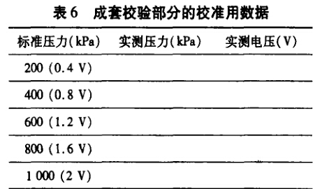 單擊桌面上“壓力表-電壓電流型”圖標(biāo),計(jì) 算機(jī)進(jìn)人電壓、電流型壓力變送器及配套儀表校驗(yàn) 主界面。選擇傳感器類型(如電壓型CY.Y2-1(5 V)),單擊“成套校驗(yàn)”圖標(biāo),進(jìn)人壓力傳感器及配 套儀表成套校驗(yàn)界面。將0.03%數(shù)字萬(wàn)用表測(cè)試 線連接到配套儀表接口的測(cè)試位2,將D030 - EG 三用表校驗(yàn)儀與試驗(yàn)臺(tái)測(cè)試線(電壓型)相連。壓 力校驗(yàn)器上安裝0. 25級(jí)(0 ~ 1. 6) MPa精密壓力 表。三用表校驗(yàn)儀分別輸出標(biāo)準(zhǔn)電壓0.4 V、0. 8 V、1.2 V、1.6 V及2 V,同時(shí)相對(duì)應(yīng)壓力校驗(yàn)器造 壓到 200 kPa、400 kPa、600 kPa、800 kPa 及 1 000 kPa時(shí),比較液晶顯示屏上“傳感器/壓力”部分示 值。查看數(shù)字萬(wàn)用表所顯示的電壓值。如表6。