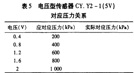 單擊桌面上“壓力表-電壓電流型”圖標(biāo),計(jì) 算機(jī)進(jìn)人電壓、電流型壓力變送器及配套儀表校驗(yàn) 主界面。選擇傳感器類型(如電壓型CY.Y2-1(5 V)),單擊“傳感器校驗(yàn)”圖標(biāo),進(jìn)人電壓型傳感器 校驗(yàn)界面。將D030-EG三用表校驗(yàn)儀與試驗(yàn)臺(tái) 測(cè)試線(電壓型)相連,三用表校驗(yàn)儀輸人一個(gè)標(biāo) 準(zhǔn)電壓(V),液晶顯示屏“傳感器/壓力”部分顯示 一對(duì)應(yīng)壓力(kPa)。對(duì)應(yīng)關(guān)系如表5。