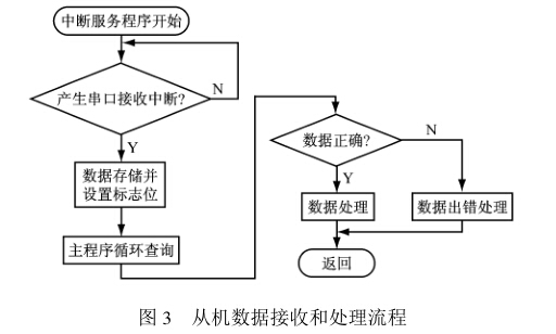 精密數(shù)字壓力表釆用PIC18F252作為主控芯 片,其軟件編程語(yǔ)言釆用C語(yǔ)言,在MAPLAB IDE 平臺(tái)上開(kāi)發(fā),利用PICC- 18編譯工具編譯。從機(jī) 軟件功能為實(shí)現(xiàn)壓力表地址分配(不允許2臺(tái)不同 的壓力表具有相同的地址值)以及對(duì)主機(jī)查詢信息 命令的中斷響應(yīng)。壓力表地址分配是由按鍵處理子 文件實(shí)現(xiàn)的,通過(guò)進(jìn)入壓力表的菜單模式下地址處 理子菜單St - AD進(jìn)行相應(yīng)按鍵操作,最終將設(shè)定 好的地址值保存到PIC18F252自帶的EEPROM 中。設(shè)定壓力表地址值后,主機(jī)對(duì)從機(jī)進(jìn)行數(shù)據(jù)查 詢時(shí),從機(jī)在USART接收中斷服務(wù)程序中完成對(duì) 數(shù)據(jù)的保存,并置位標(biāo)志位,等待主程序循環(huán)對(duì)所接 收數(shù)據(jù)進(jìn)行處理。從機(jī)數(shù)據(jù)接收及處理程序流程如 圖 3 所示 。