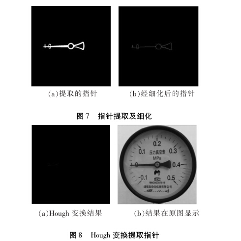 通過觀察表盤可以發現,所有的刻度的延長線 都經過圓心,同時,指針也隨圓心轉動,所以指針也 經過圓心,求取所有刻度線與指針的交點,即可以得 出圓心位置。同時觀察圖4,除了需要的刻度及指 針對象外,圖像還有許多其他背景圖像,由此,還需 要將表盤外圈及文字和數字去掉,盡可能只剩下表盤 刻度及指針這些有用的對象,方便后續算法處理。