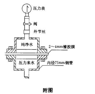 在電站冷卻水系統中,經常 出現壓力表損壞的情況,特別是 水庫汛期時,壓力表損壞情況更 為嚴重。原因是來自蝶閥前引水 洞的水經常含有泥沙,或其它阻 滯物,如跋山水電站有段時間帶 有小魚進入冷卻水中。這些雜物 極易進入冷卻水管死角——壓力 表中,致使壓力表不能正常反映 壓力。針對這一情況,我們在壓力 表前水管處增加一個中間有橡膠 隔膜的密封容器(見圖),容器上 端充滿純凈水與壓力表相接,下端與來水管相接,含雜物的水經壓力隔膜和 純凈水傳至壓力表。這樣,雜物不會直接進人壓力表引起表故障了。經過實 踐證明,釆用此方法效果非常明顯。