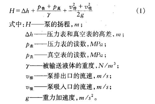 式(1)中,當壓力表測量點高于真空表測量點時, Ah為正值,反之應為負值。當壓力表與真空表 安裝高度相等時(如Y油栗),即AA=0。泵的吸 人管與親與f f規等時’泵昀場程與壓力表和 真