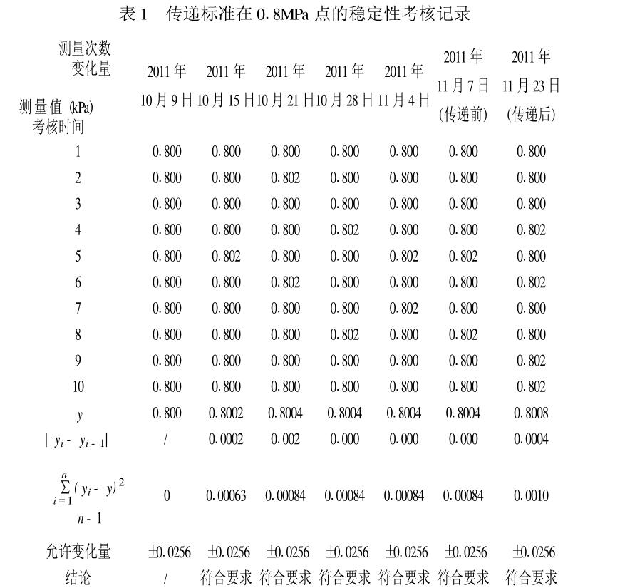 按照J(rèn)JG52 - 199《彈簧管式一般壓力表、壓力真空 表和真空表》檢定規(guī)程表1中后續(xù)檢定和本次比對實施 方案的具體要求,對提供的傳遞標(biāo)準(zhǔn)(一般壓力表)進行 檢定。委托單位為“廣元市計量檢定測試所”并完成 0. 8kPa指定點示值誤差測量結(jié)果的不確定度評定。