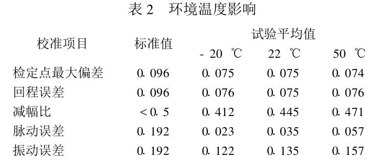 由表2中的數(shù)據(jù)對(duì)比可知,工作環(huán)境溫度的變 化、校準(zhǔn)中基本誤差、回程誤差、脈動(dòng)誤差和振動(dòng) 誤差對(duì)校準(zhǔn)環(huán)境溫度均有一定的影響,因此建議增 力口 “校準(zhǔn)環(huán)境溫度:20 ±5 C”的條款。