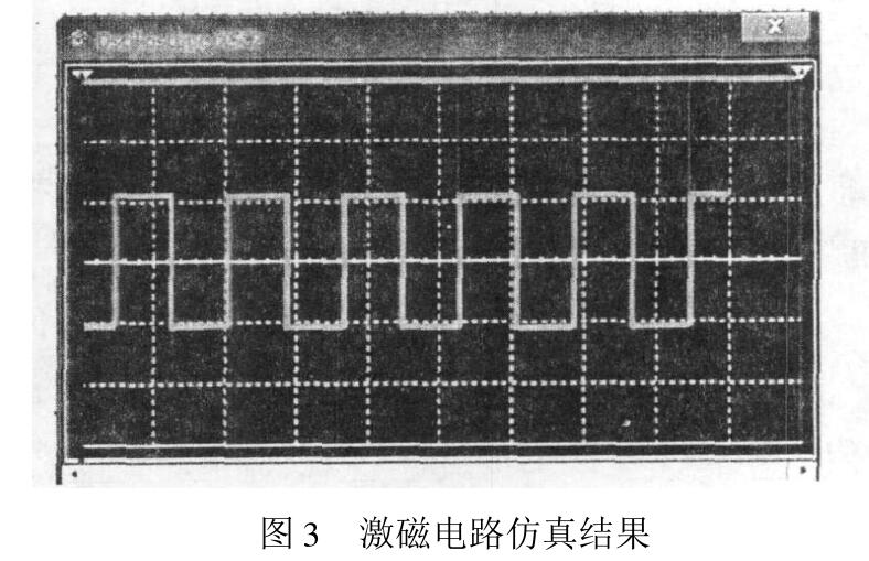 其中’ VP2是P2端口輸出電壓幅值的絕對值,此 處應該是+24V。整個電路是對稱的,且R'5 = R20 ,當 P2.9為低電平,P2.8為高電平時,P2的端口 2無電壓 輸出,端口 1輸出+ 24V的電壓,Vref( +)值不變,如 此周而復始輸出頻率為6. 25Hz的的雙極性矩形波。 用Multisim仿真結果如圖3所示。